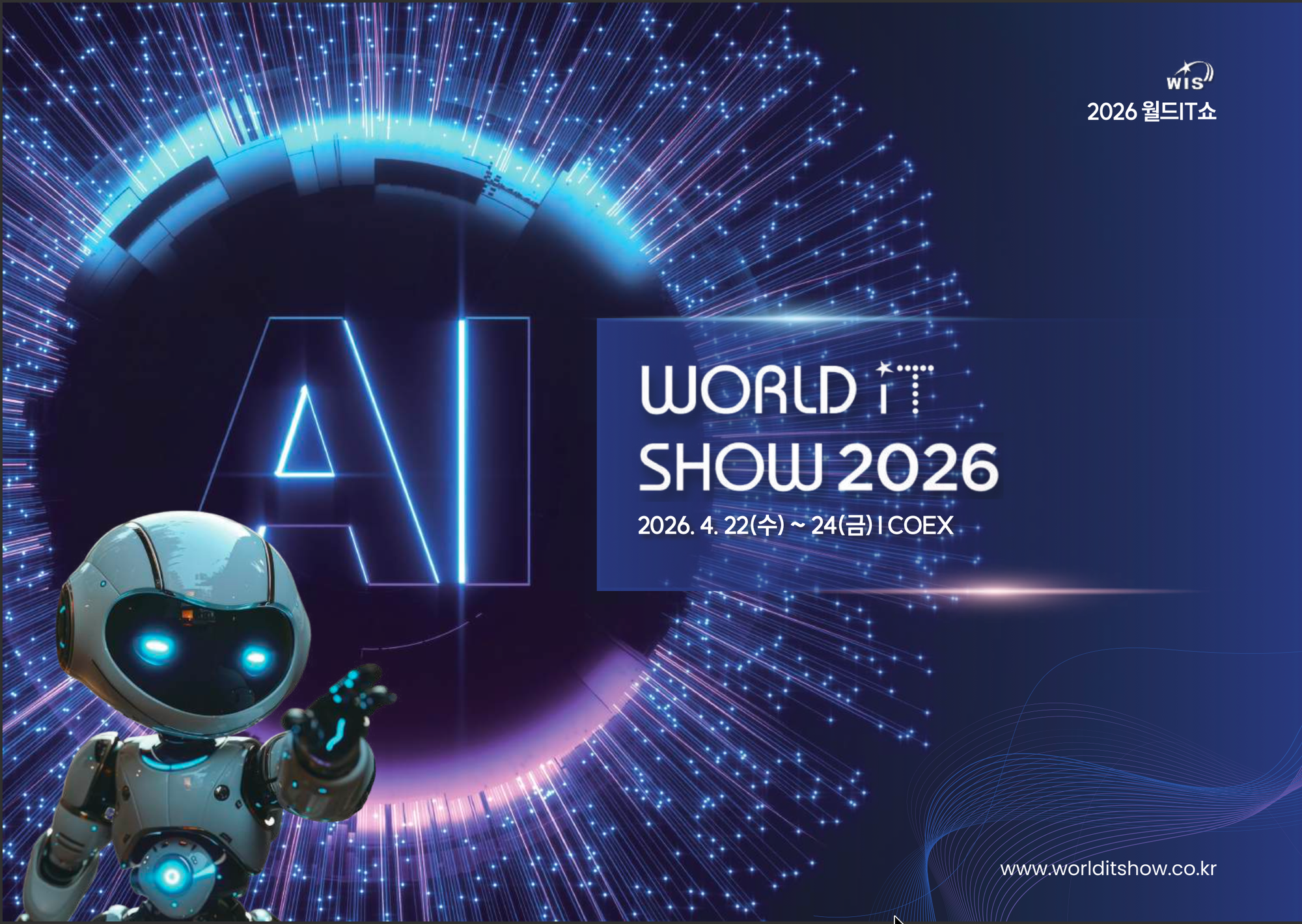 더선한(주)가 오는 4월 22일부터 코엑스에서 열리는 대한민국 최대 기술 축제인 '2026 월드IT쇼(WIS)'에 참여합니다.